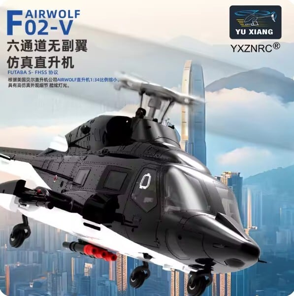 S-FHSSフタバ◆YUXIANG F02-V AirWolf 1:34 3D6軸 Futabaプロポ使用スタントヘリ、ブラシレスモーター